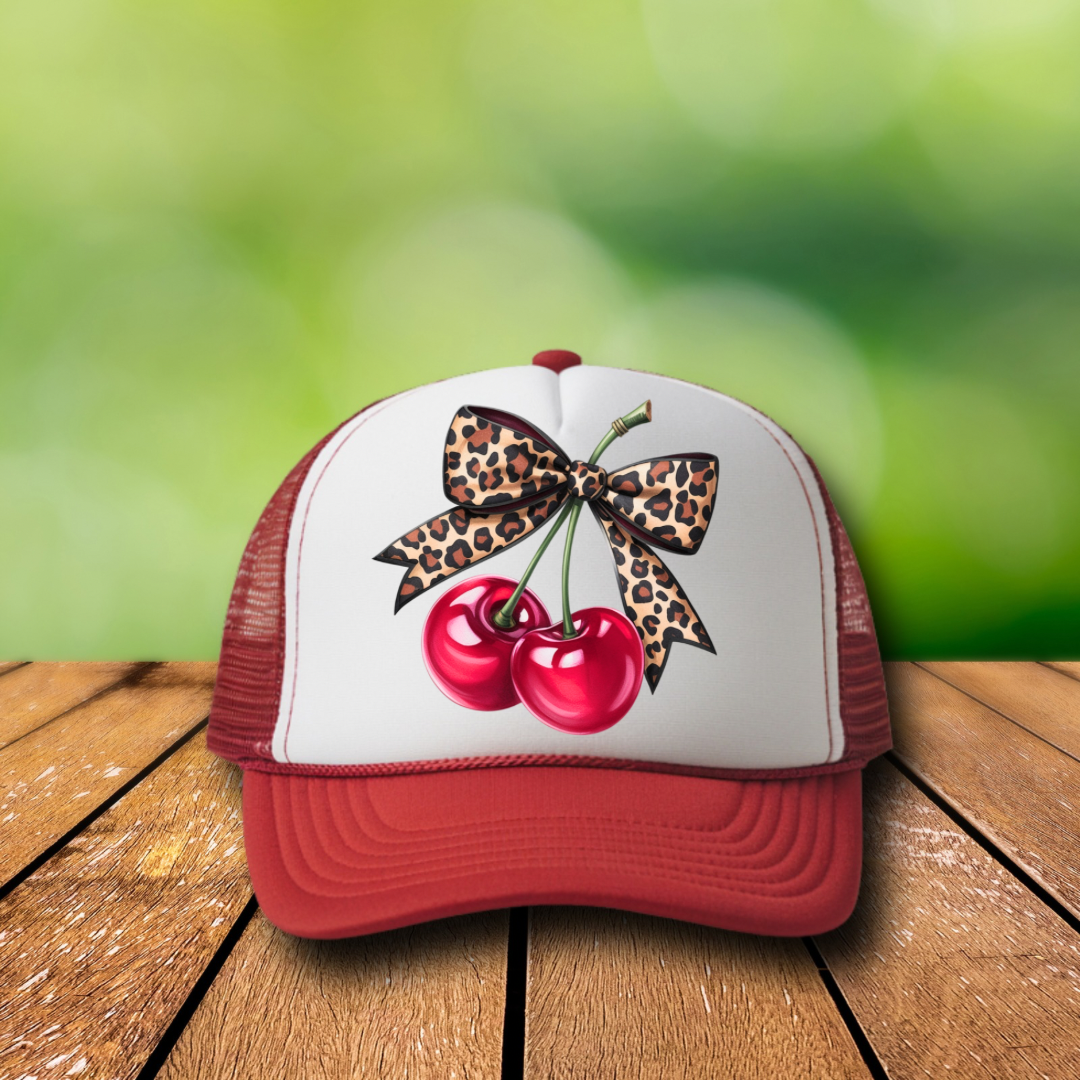 DTF Hat Patch- Leopard Cherries