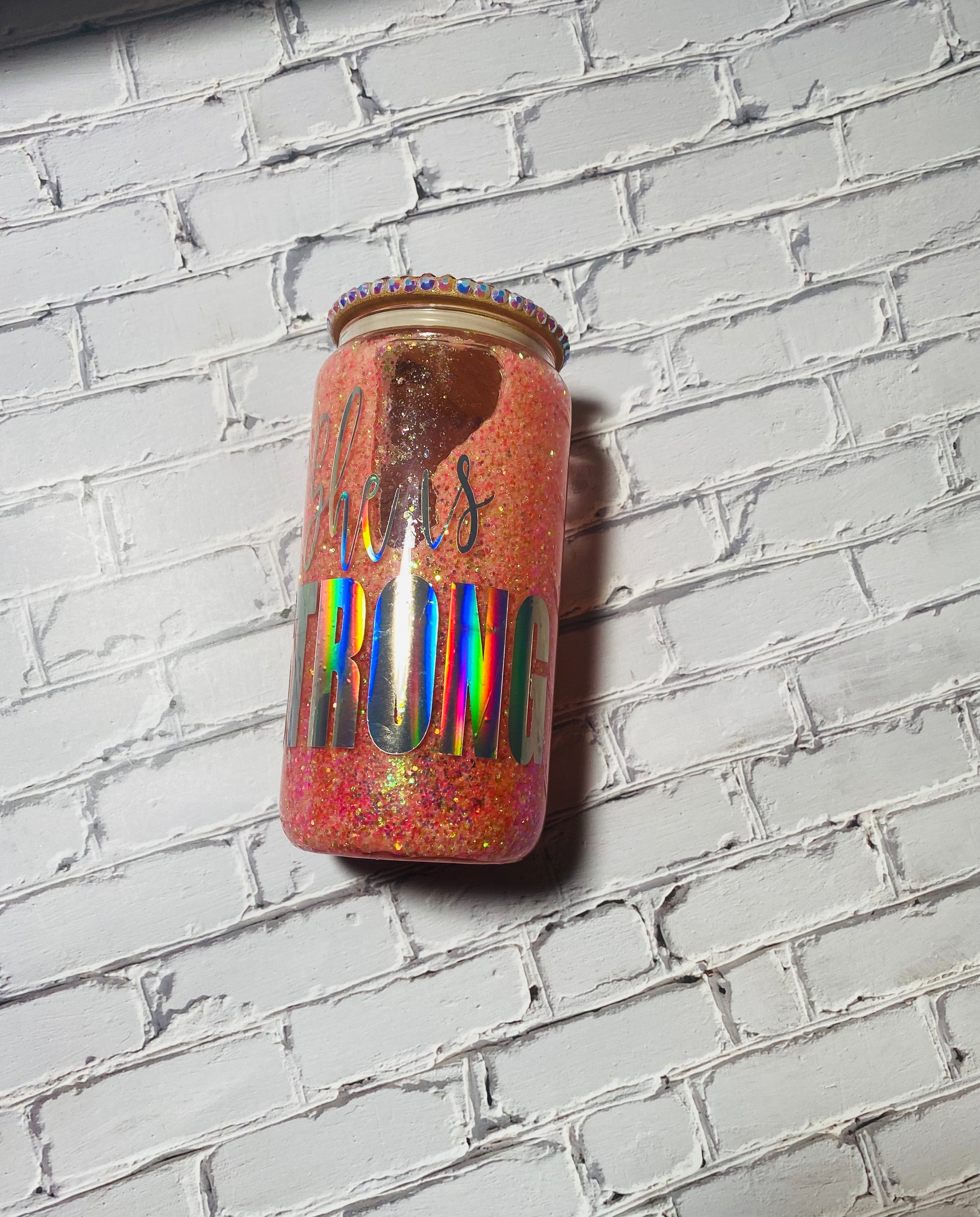 Our glass snow globe tumbler with or without blinged out Bamboo lid, and clear plastic straw, can be customized with various glitter/rhinestone/vinyl combinations. Suitable for cold drinks, such as iced coffee, water, and iced tea.