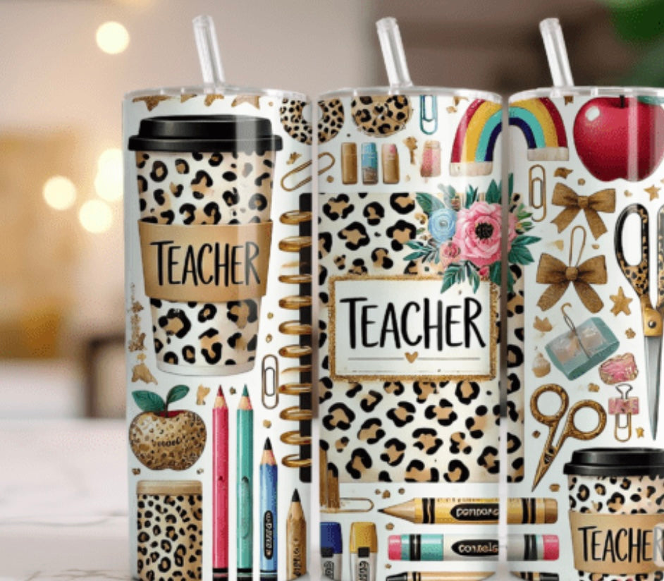Sublimation Tumbler Wraps- Teacher Leopard (20 oz or 30 oz)
