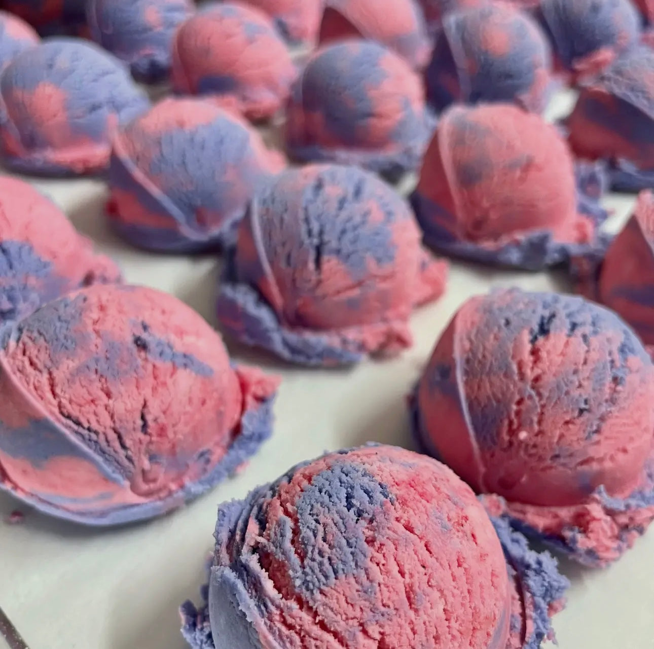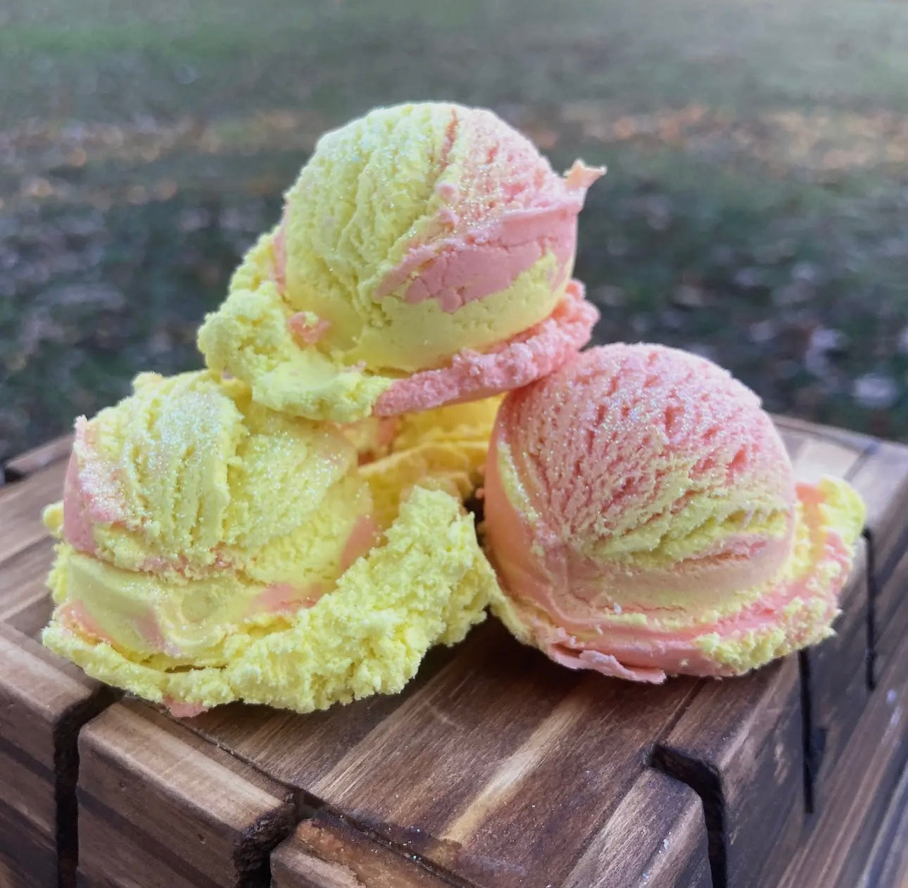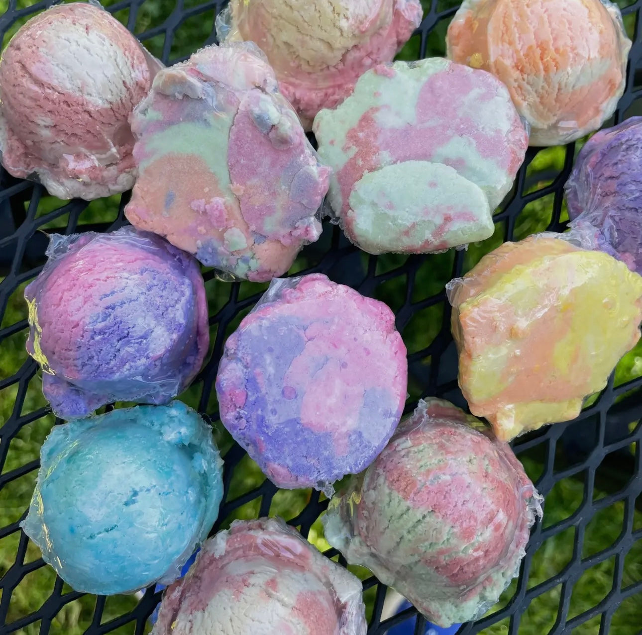 Our Bubble Scoop Bubble Bath Sundae comes with 3 scoops of solid Bubble Bath, which you choose from our 9 scents. Bubble Scoops are fun and easy to use. They will fill your bath with lots of soft and fluffy bubbles. Each Bubble Scoops is enough for 2 bubble baths. Each Bubble Scoop is handmade and is about 1.2 ounces of Bubble Bath.